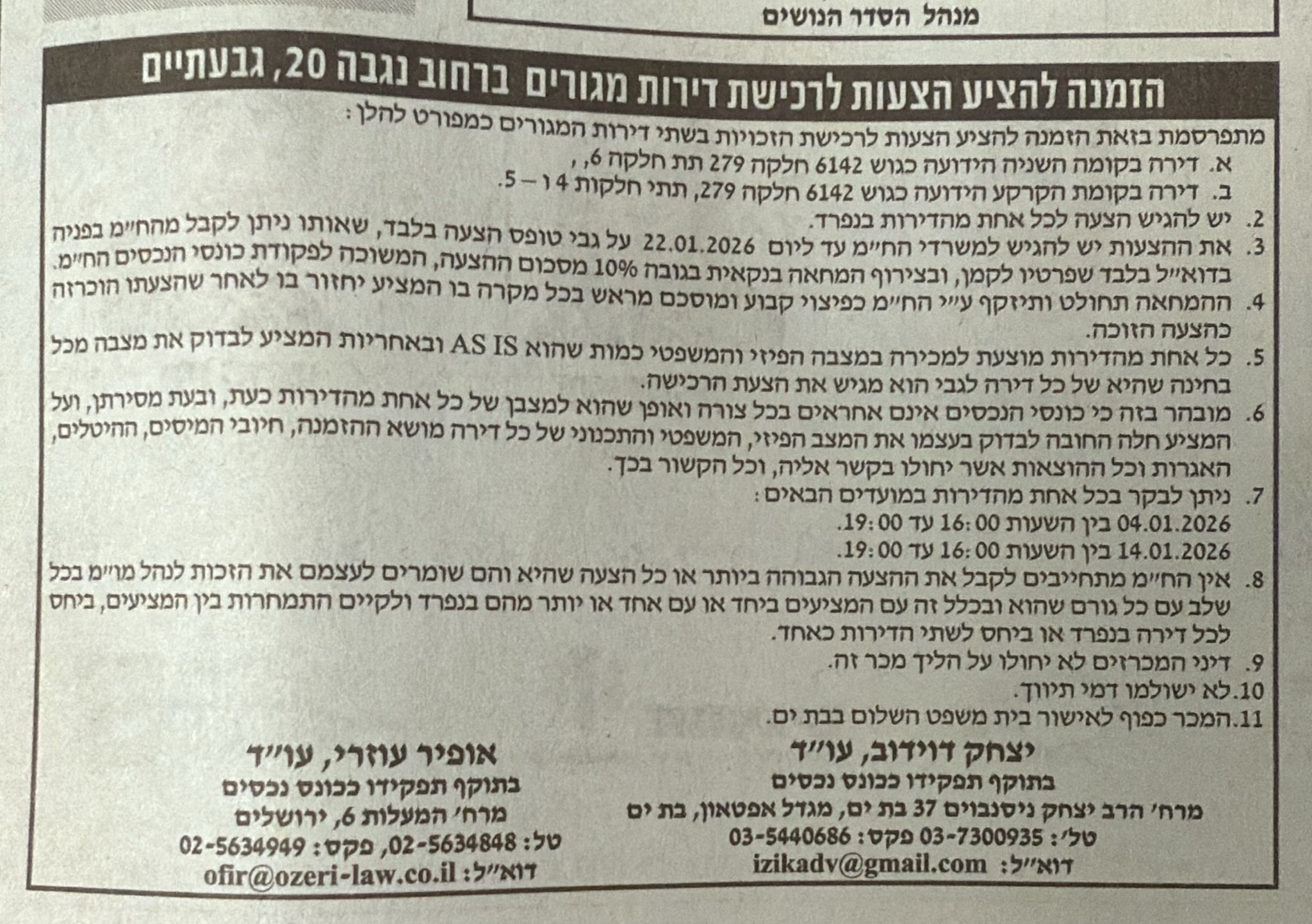 נותרו 25 ימים לסיום המכרזדירה בבת ים רח' אלי כהן