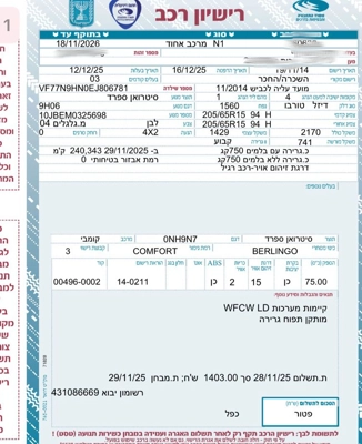 כונס נכסים / לוח רכב / מכרז רכב מספר 592
